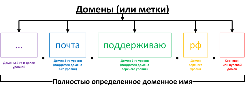 Доменное имя обычно состоит из двух основных частей, разделенных точкой: